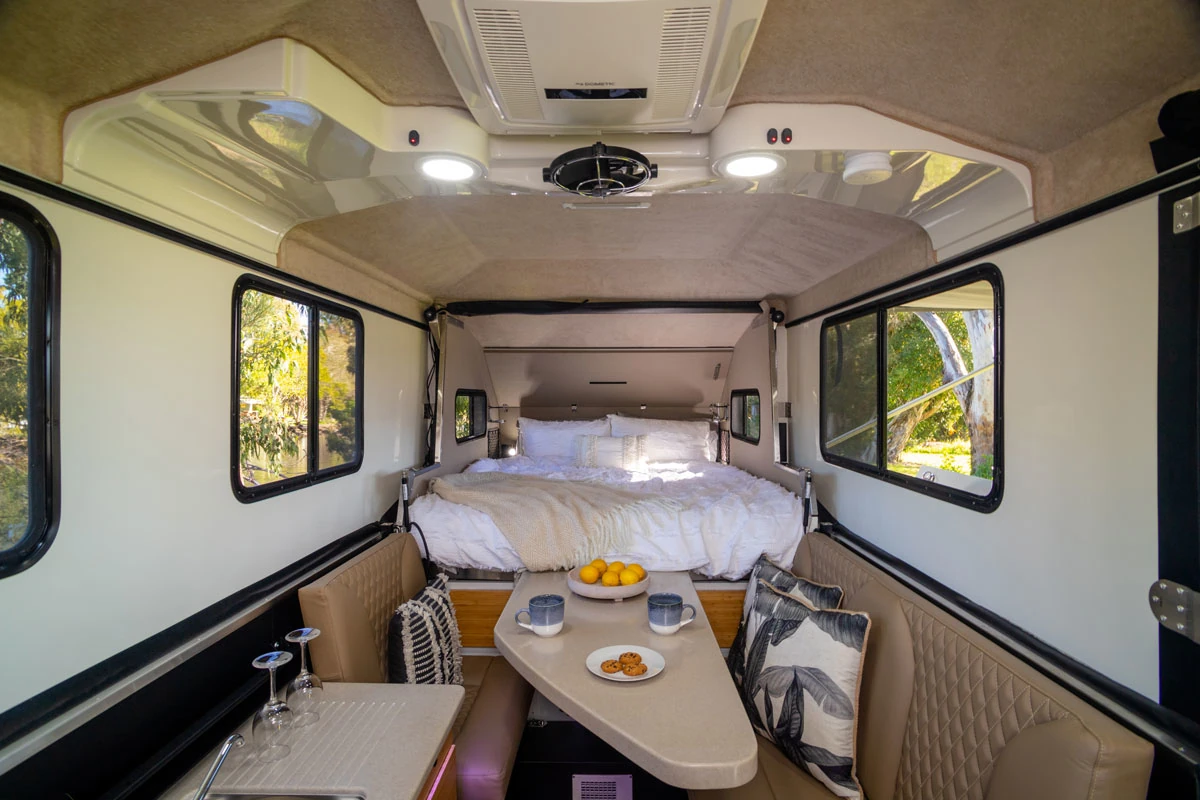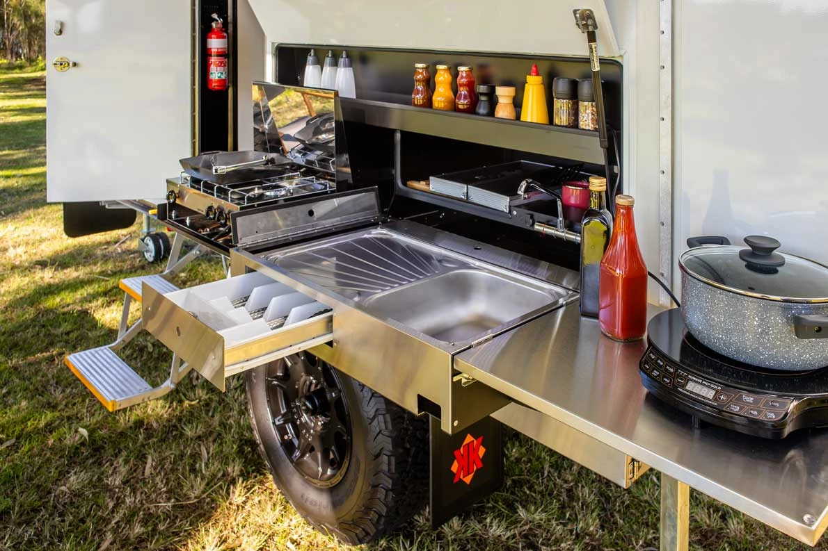 With the birth of Australia’s first genuine expanding Hybrid, the amazingly versatile Kimberley Karavan will go anywhere your tow vehicle will go. Experience the luxurious comforts of a Kimberley Kruiser, and compact Off-Road agility of the light weight Kimberley Kamper, with the all-in-one package of the Kimberley Karavan!